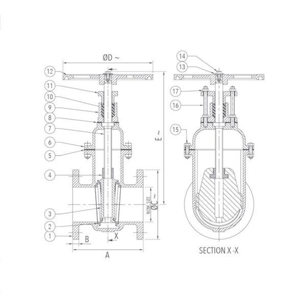 - Bolted Bonnet, Inside Screw, Non-Rising Stem.