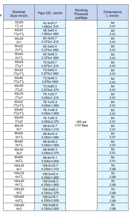 Threaded concentric reducers, as the name suggests, have threaded connections on both ends. These threads allow for a secure and leak-proof connection with threaded pipes or other fittings. Threaded connections are typically made by screwing the reducer onto the threaded ends of the pipes or fittings, using appropriate sealing materials such as Teflon tape or pipe dope to prevent leaks.